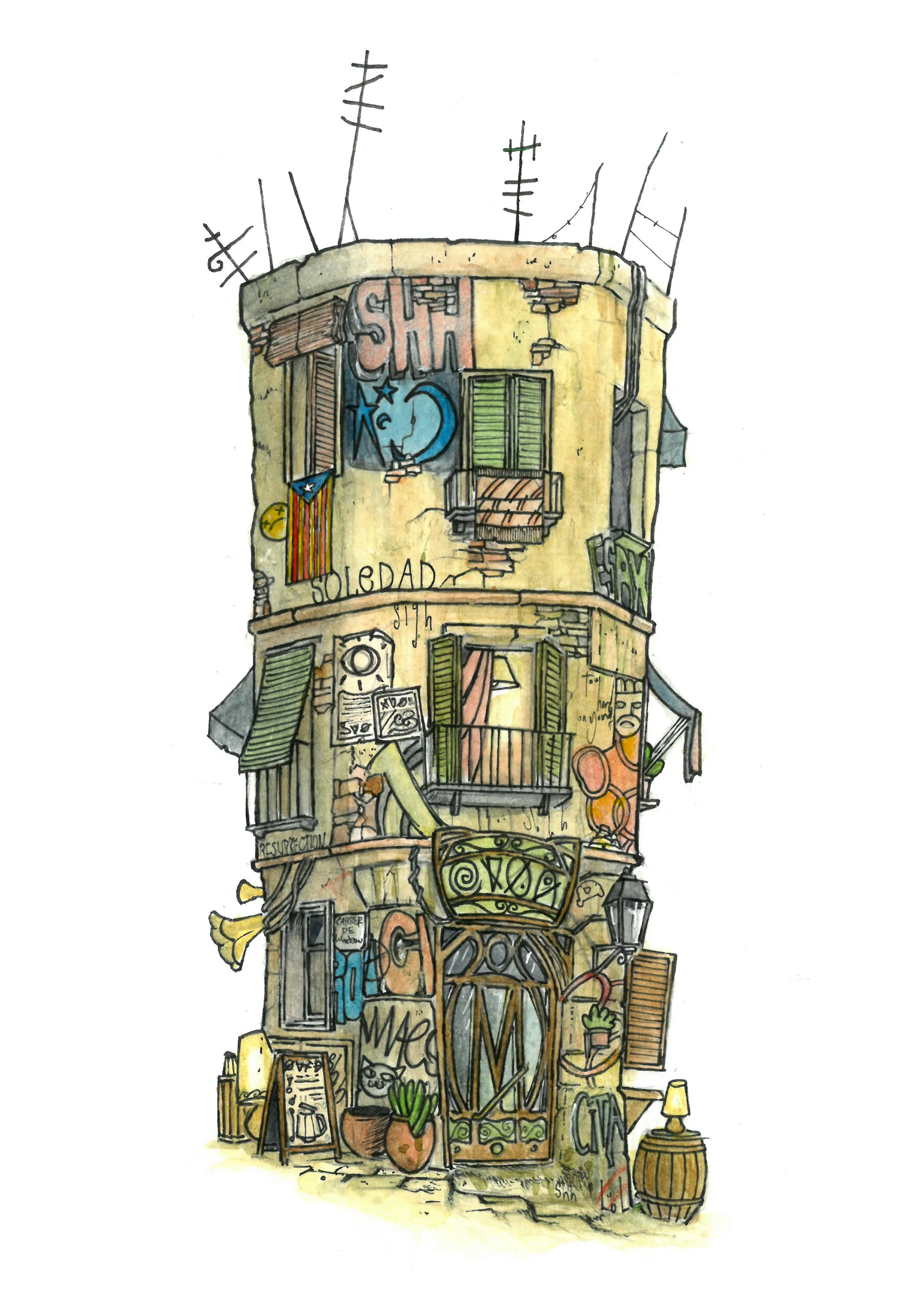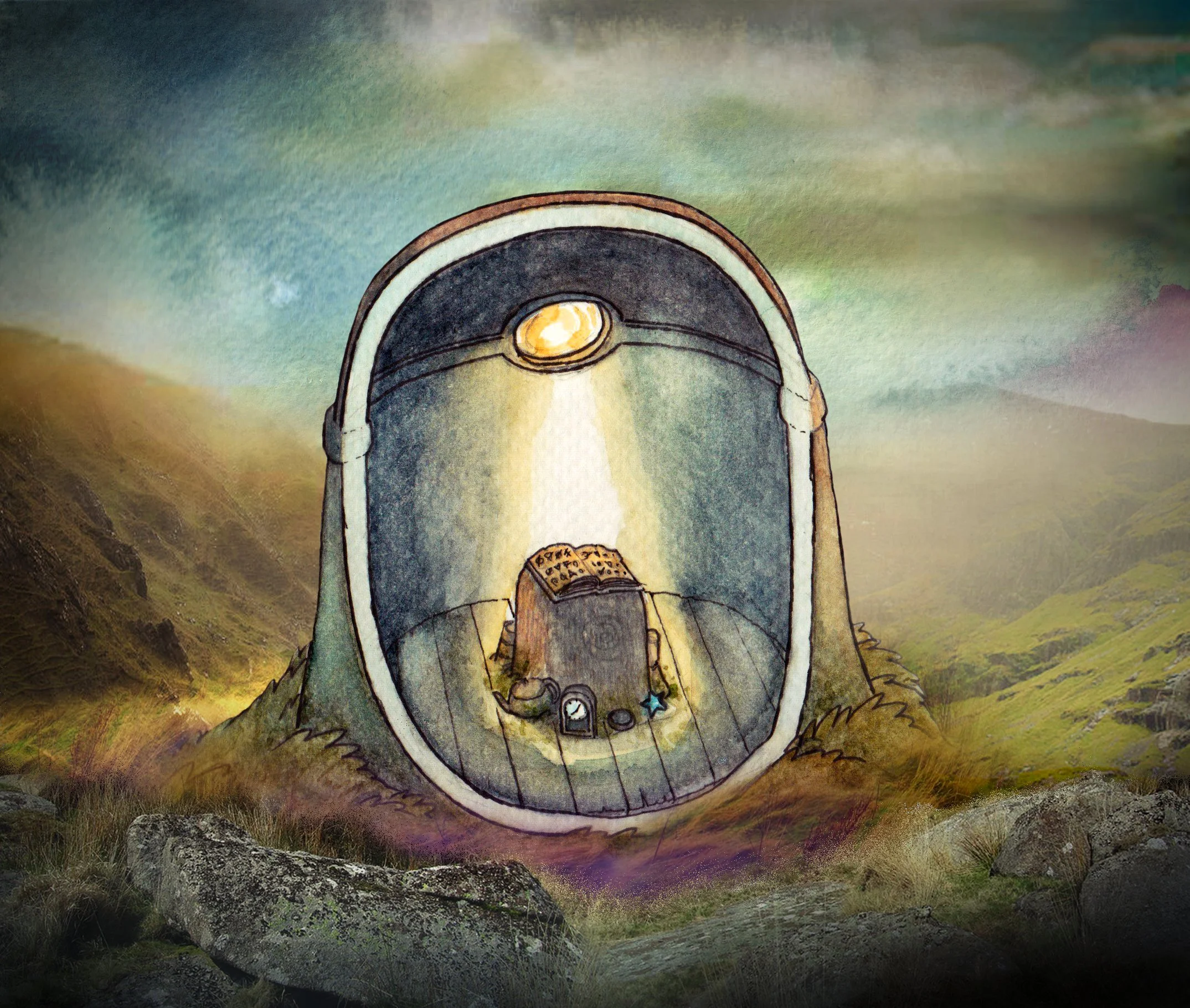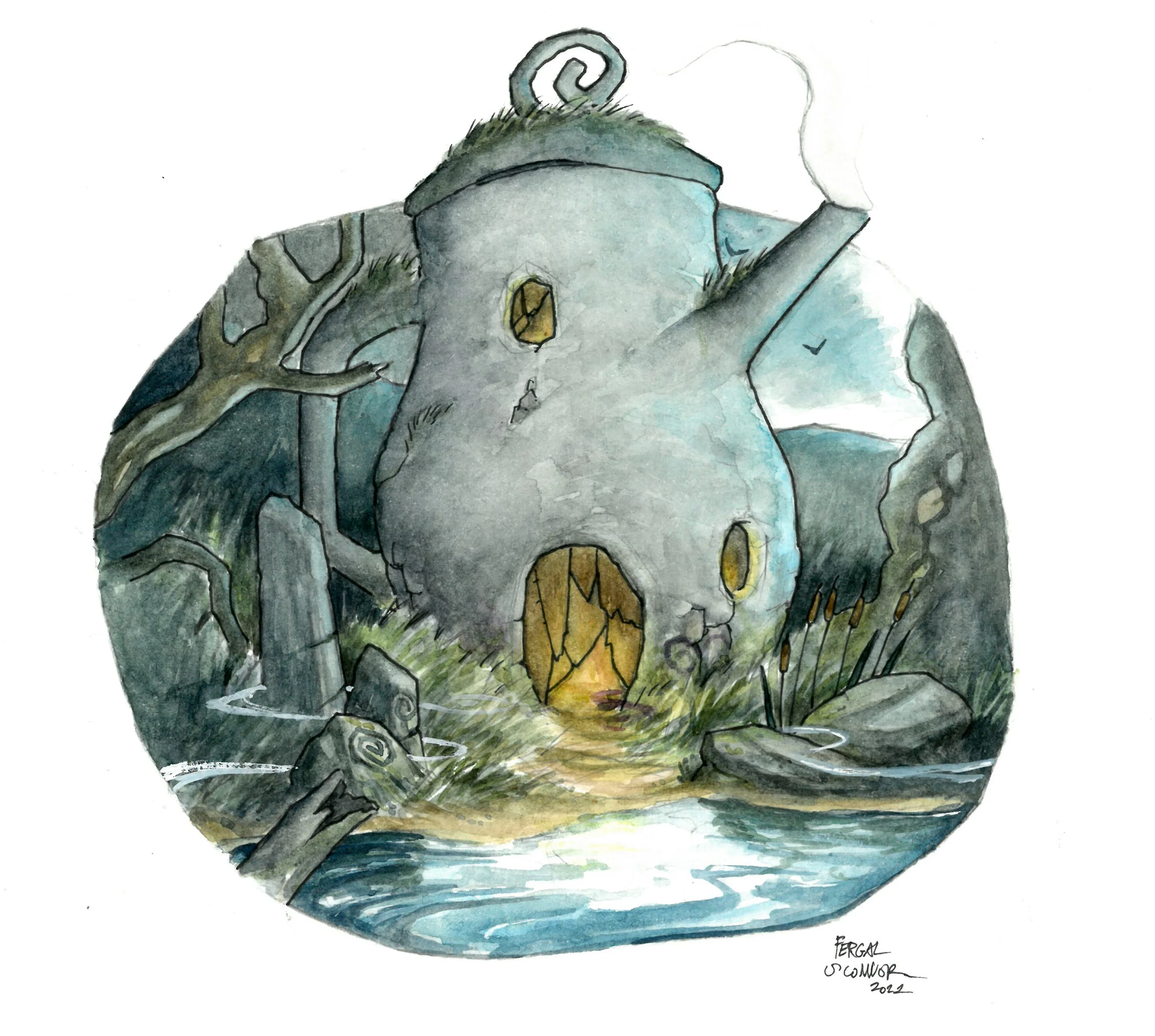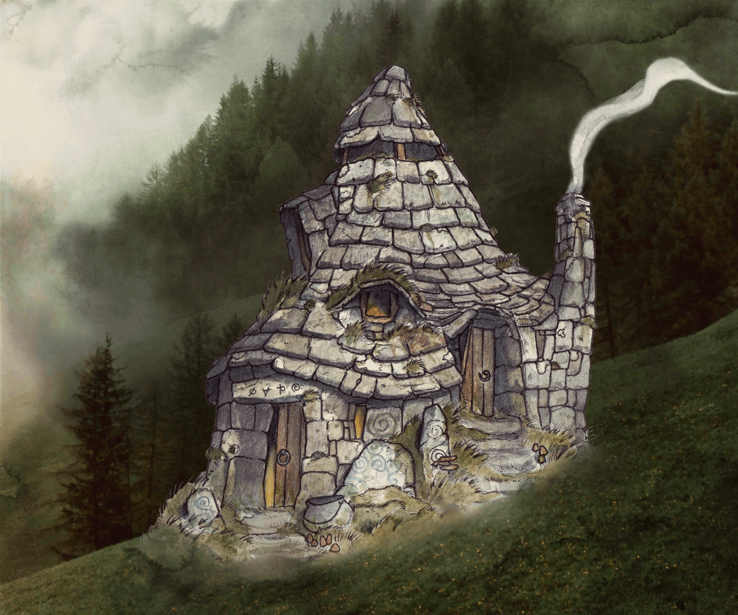 Witch's Hilltop Hovel original watercolour image. View fullsize