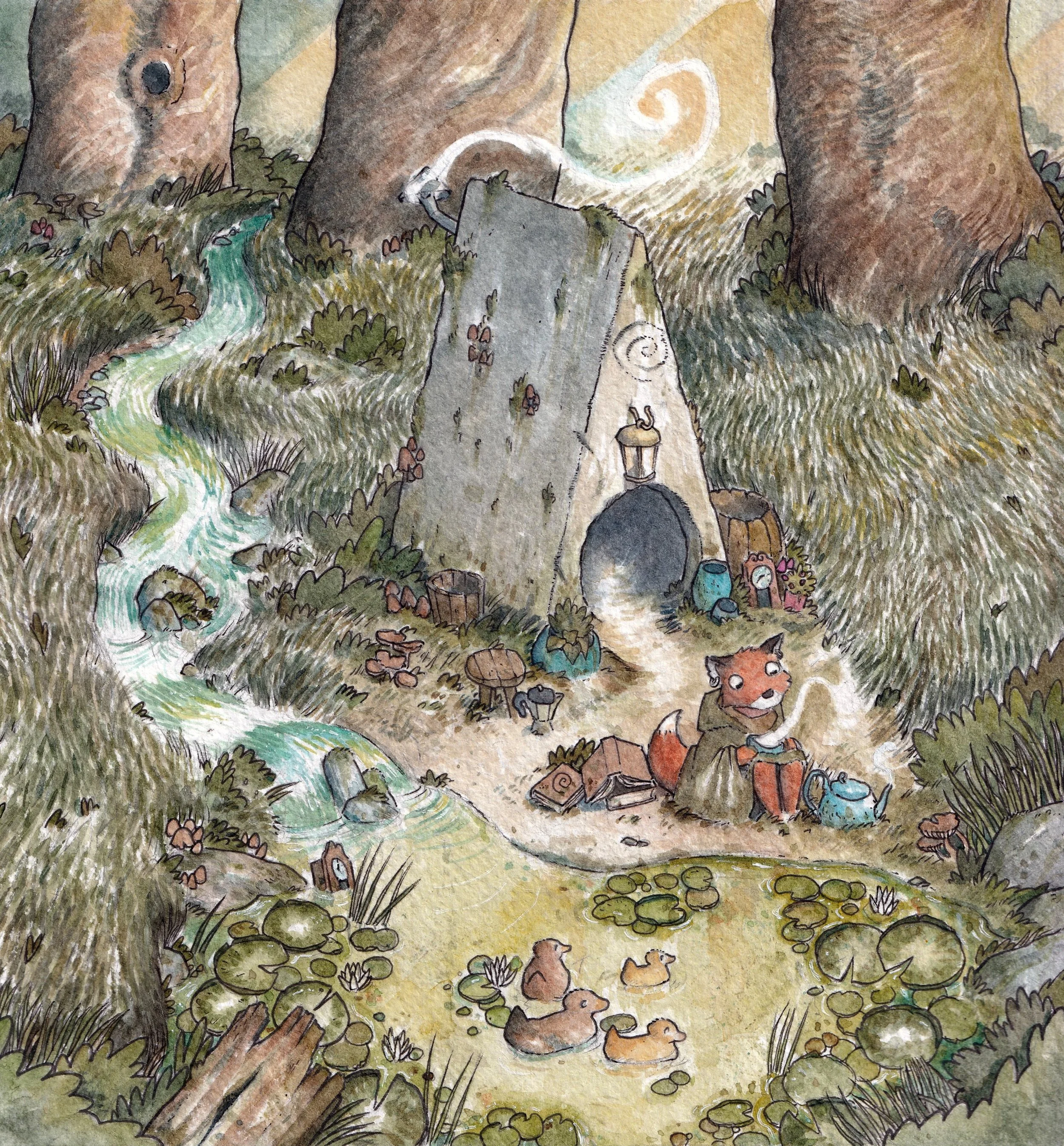While out exploring the hills and valleys surrounding his home, Mr. Fox stumbles across a curious little hilltop home.